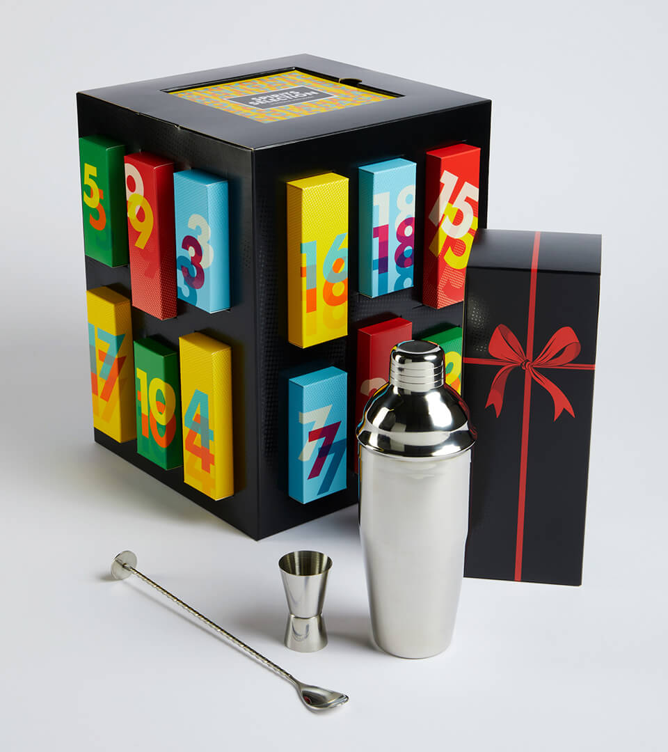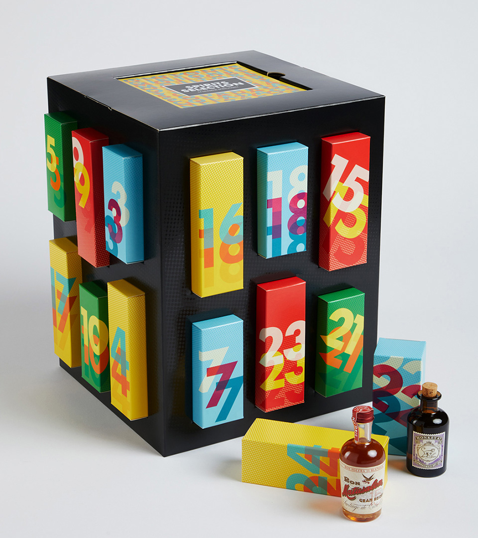 Dieser Adventskalender vereint Design, Funktion und Inhalt auf kreative Weise und bringt Pop Art nicht nur in die Weihnachtszeit, sondern auch in die Hausbar.