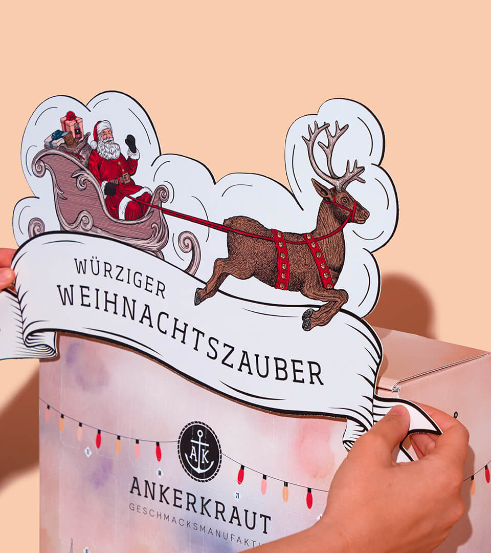 Mit dem Ankerkraut Adventskalender wird die Weihnachtszeit zu einem Fest für alle Genießer: 24 aromatische Überraschungen rund um das Thema Kochen laden dazu ein, neue Gewürzwelten zu entdecken und die festliche Küche kreativ zu gestalten. Ergänzt wird das Geschmackserlebnis durch ein inspirierendes Rezeptheftchen sowie ein weihnachtliches Motiv zum Aufkleben, das dem Kalender eine persönliche Note verleiht.